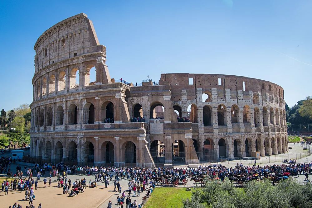 Rome regorge de sites emblématiques, mais le Colisée reste l’emblème définitif de la ville. Achevé en 80 après J.-C., cet amphithéâtre romain, situé au cœur du centre-ville, est un excellent point de départ pour une exploration du monde antique. Historiquement, il était principalement utilisé comme un lieu de divertissement où les citoyens romains regardaient les gladiateurs se battre à mort ou les individus affronter de dangereux prédateurs comme les rhinocéros ou les tigres.