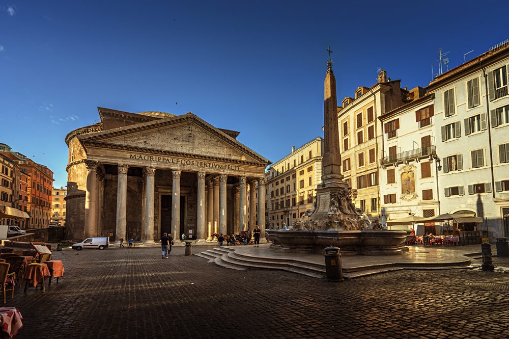 Le Panthéon est l’une des grandes réalisations architecturales du monde antique. Situé dans l’angle nord-ouest de Pigna, le Panthéon a été achevé et inauguré au début du IIe siècle après J.-C. par l’empereur romain Hadrien. D’abord temple dédié au « panthéon » des dieux romains, il est devenu une église au VIIe siècle, ce qui lui a permis de survivre aux siècles suivants.