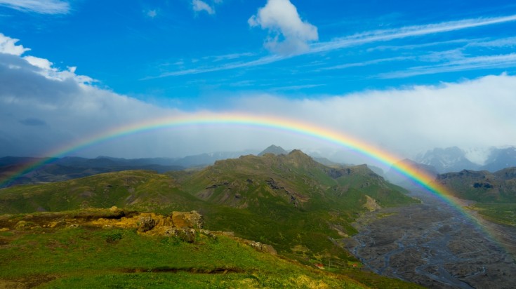 L’incroyable vallée de Thorsmork (Þórsmörk), traduite en anglais par « Thor’s Valley », est un panorama époustouflant entouré par trois des plus célèbres glaciers d’Islande : Eyjafjallajökull, Mýrdalsjökull et Tindfjallajökull. Si la vallée regorge de sites magnifiques (de quoi vous occuper pendant des semaines !), la meilleure petite randonnée d’une journée dans la région est certainement celle de la montagne Valahnukur. Ce sentier en boucle ne prend qu’une heure et demie à deux heures, mais il offre des vues panoramiques époustouflantes sur l’ensemble de la vallée de Thorsmork. Vous pouvez commencer et terminer cette randonnée aux Volcano Huts, dans la réserve naturelle de Thorsmork.