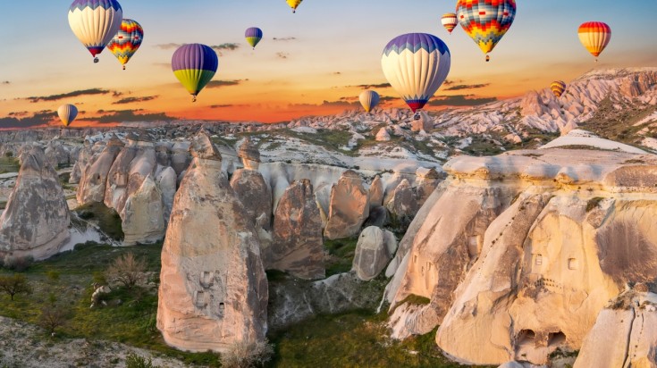 - Où aller et quoi faire : Survoler les paysages de la Cappadoce en montgolfière, visiter les hôtels troglodytes et y passer la nuit, explorer la ville souterraine de Kaymakli, visiter les nombreuses vallées telles que la vallée de l’Amour, la vallée Rouge, la vallée des Pigeons et la vallée des Fées.