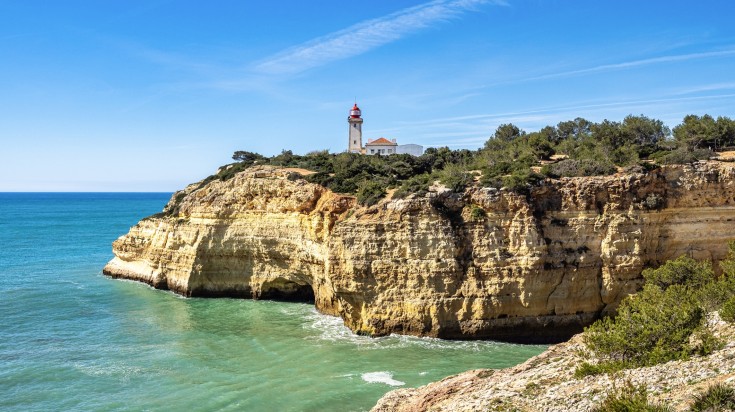 Ce sentier classique de l’Algarve, avec ses falaises dorées et ses vagues déferlantes, est l’un des plus populaires du pays. Avec de nombreuses plages le long du chemin où s’arrêter pour se baigner, ce sentier peut être parcouru même en été si vous ne craignez pas la chaleur et les éventuelles foules. Ne manquez pas de prendre une photo du phare d’Alfanzina ou des arches de Praia da Mesquita. L’itinéraire passe également par Praia Benagil, où se trouvent les célèbres grottes de Benagil, accessibles uniquement par bateau – vous pouvez organiser une excursion depuis la plage si vous avez le temps, cela en vaut la peine. L’arrivée à Praia Marinha est tout à fait spectaculaire. Récompensez-vous avec un plongeon dans les eaux émeraude et un long déjeuner.