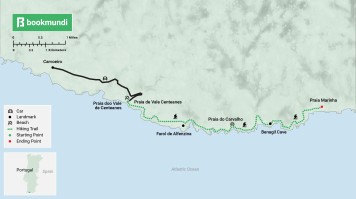 - Début/fin du sentier : Praia São Torpe, juste au sud de Sines à Lagos, Algarve