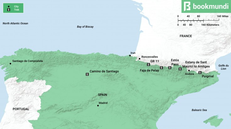 - Lieu de départ et d’arrivée : Au départ d’Irun, sur la côte atlantique de l’Espagne, l’itinéraire passe par Andorre et se termine au Cap de Creus, sur la côte méditerranéenne du pays.