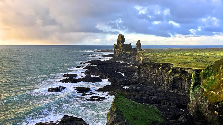 - Outre son glacier, le volcan Snæfellsjökull est couvert de cratères et de champs de lave, menant à un paysage rempli de grottes, de falaises marines et d’incroyables plages de sable noir.