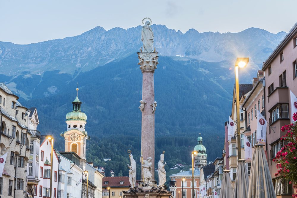 La principale artère d’Innsbruck est la Maria-Theresien Strasse. C’est là que vous pouvez faire vos courses ou vous asseoir dans l’un des nombreux cafés en plein air et admirer l’architecture baroque environnante. Cette rue est vieille de 700 ans. Pendant la période baroque, de nombreuses maisons ont été converties en magnifiques résidences palatiales. La rue abrite également la colonne de Sainte-Anne, la chapelle de Saint-Georges et l’arc de triomphe. Aujourd’hui, c’est une élégante promenade et une zone piétonne.