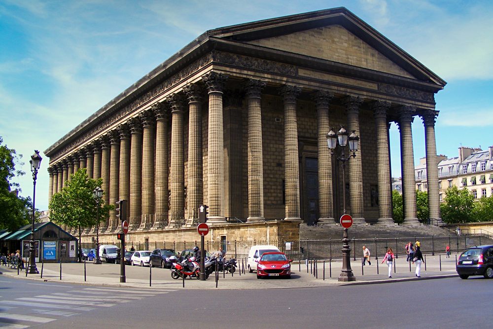 Eglise de la Madeleine, Paris L’Eglise de la Madeleine (en français) est située près de la place de la Concorde. Sa construction a été achevée en 1842 sous la forme d’un temple grec avec des colonnes corinthiennes entourant le bâtiment. Il semble que Napoléon ait voulu que ce soit un panthéon en l’honneur de ses armées. A l’intérieur, on trouve des sculptures et des peintures intéressantes. Il y a aussi un magnifique orgue d’église. Quel meilleur endroit que cette église quelque peu caverneuse pour assister à un concert lors d’un voyage à Paris ? L’église propose des concerts de musique classique le dimanche et d’autres concerts sont organisés à des jours différents tout au long de l’année.