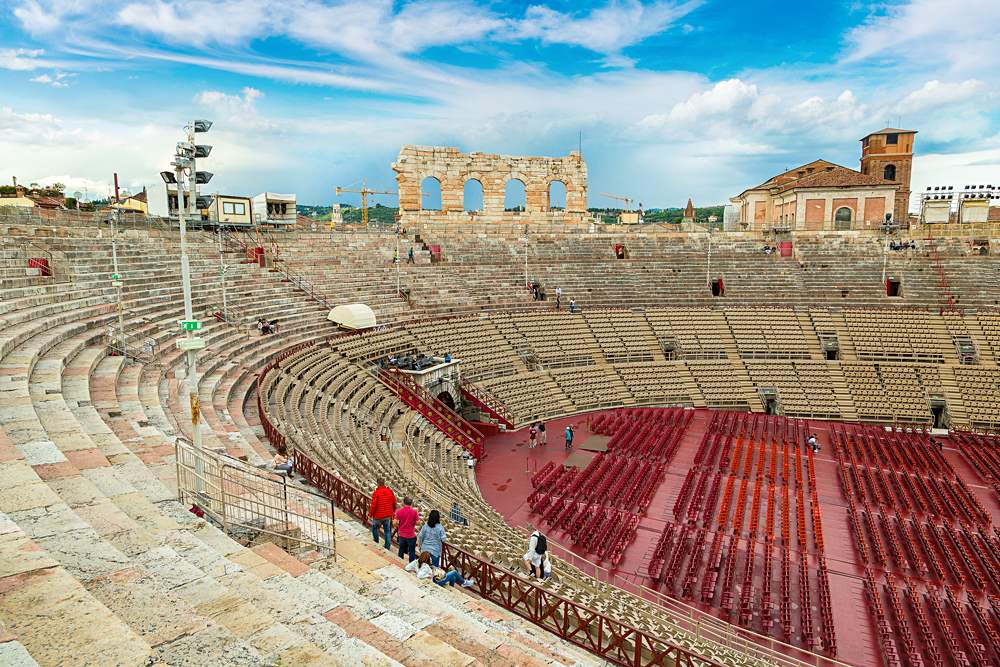 Les Arènes de Vérone Construit au 1er siècle après J.-C., l’amphithéâtre romain de Vérone a survécu à un tremblement de terre pour devenir le légendaire opéra en plein air de la ville, avec une capacité de 15 000 places assises, ce qui lui permet d’accueillir le festival d’été d’opéra. C’est le 8ème plus grand amphithéâtre de l’Empire romain et il est même antérieur au Colisée de Rome. L’amphithéâtre est entièrement en plein air. Une fois, j’ai assisté à une représentation de la pièce de VerdiAida et a été étonné par deux choses. D’une part, tout le monde a reçu une bougie allumée avant la représentation, que nous avons tous agitée pour créer une atmosphère très particulière, et d’autre part, nous avons vu un chameau traverser la scène en une seule scène.