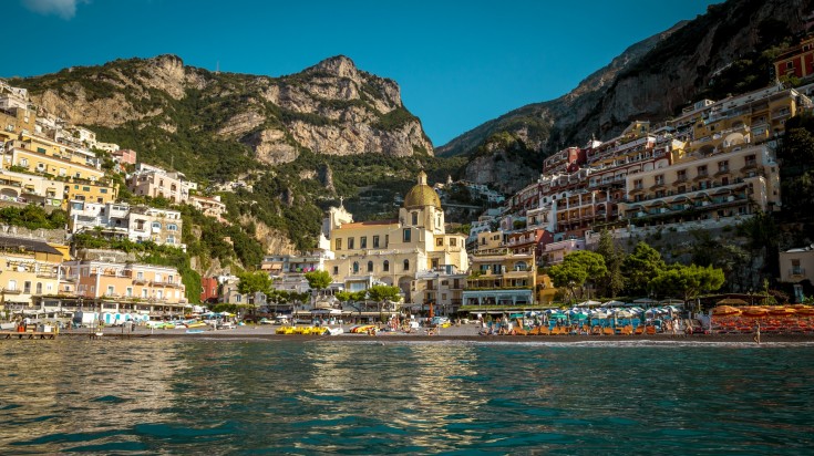 Louez une voiture pour la journée et faites 30 minutes de route sur la route d’Amalfi, entre Sorrente et Amalfi, pour rejoindre Positano. Positano est un village situé à flanc de falaise, avec une plage de galets et des rues étroites et escarpées bordées de maisons colorées, de boutiques et de cafés. L’architecture byzantine de l’église Santa Maria Assunta vous émerveillera tout au long de votre exploration de ce magnifique village de bord de mer.