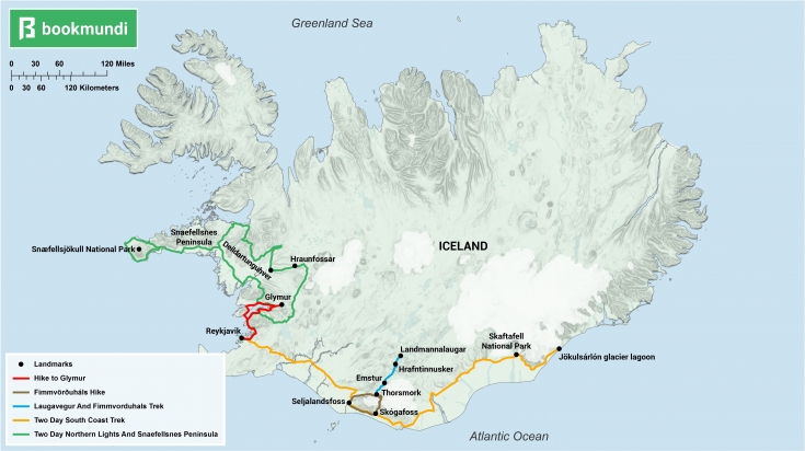 - Lieux de départ et d’arrivée : La prise en charge pour le trek commence à Reykjavik à 8h00 du matin et à la fin, vous serez ramené à votre point de départ.