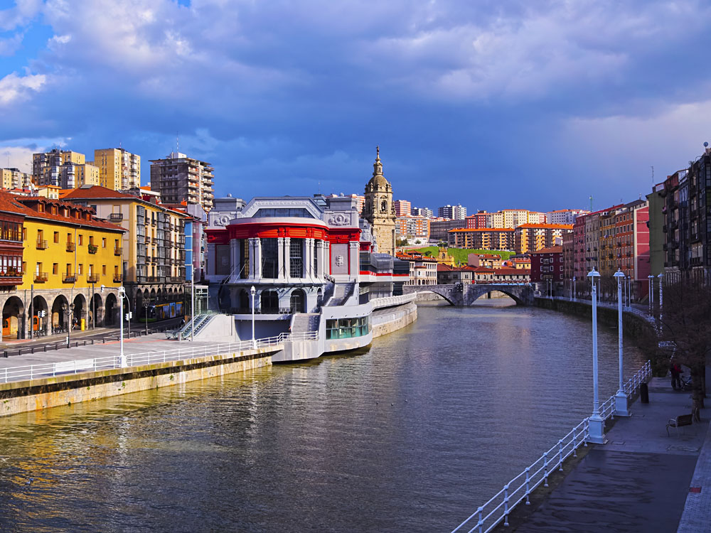 Le Casco Viejo (vieux quartier), le quartier le plus coloré de Bilbao, était autrefois entouré de murs mais il a fallu les abattre pour ouvrir ce que l’on appelle aujourd’hui les Sept Rues, puisque ce sont les sept rues qui formaient la ville médiévale d’origine. Depuis 1979, cette zone est une zone piétonne. C’est le quartier le plus ancien et plein de rues charmantes qui abritent la cathédrale gothique de Santiago, la Bourse de Bilbao, la Plaza Nueva, un marché aux puces animé du dimanche matin, le théâtre Arriaga, construit entre 1886 et 1890, et le marché Ribera, le plus grand marché couvert d’Europe.