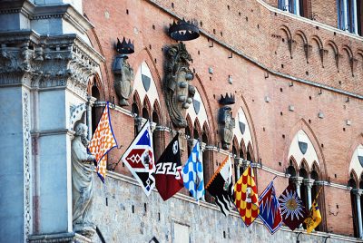 J’ai eu beaucoup de chance de faire coïncider une de mes visites à Sienne avec le Pallio. Il s’agit d’un événement très spécial et très coloré qui a lieu deux fois par an, une fois fin juin/début juillet et une autre fois en août. Le spectacle commence par une course de chevaux autour de la Piazza del Campo. C’est une course de chevaux comme aucune autre. Il s’agit d’un concours entre les 10 des 17 Contrades (districts centraux/quartiers) de Sienne, avec un cavalier et un cheval participant et représentant chacun d’entre eux. Tous les citoyens de Sienne sont affiliés à l’un des Contrades avec une loyauté passionnée et brûlante. Depuis le XIe siècle, il y a chaque année des festivals où les Contrade rivalisent de renommée grâce à des concours tels que le lancer du drapeau, les courses de chevaux et même les combats de poings (celui-ci, plus maintenant). La course elle-même a lieu en fin d’après-midi, mais la journée entière est consacrée à des processions dans les rues des différentes Contrades qui participent à la course. Après la course, le cheval gagnant, le cavalier et les citoyens de la Contrade font la fête en défilant dans la ville pendant plusieurs jours.