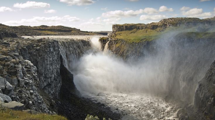 - Vous verrez Dettifoss, la chute d’eau la plus puissante, qui dégringole de 45 mètres et s’étend sur 100 mètres de large.