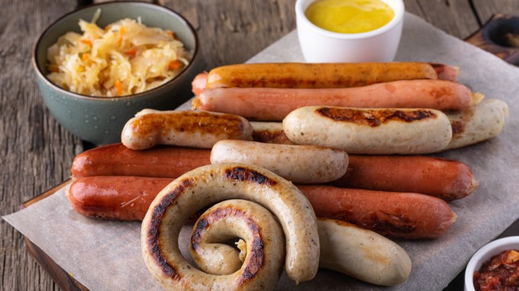 - La bratwurst, saucisse allemande par excellence, est généralement fabriquée à partir de veau, de porc ou de bœuf. Savourez les saveurs en la commandant grillée et servie avec de la moutarde douce, de la choucroute et des bretzels.