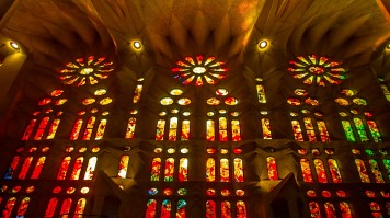 - La nature est un thème esthétique récurrent à la Sagrada Familia. Observez toutes les façons dont Gaudi s’inspire du monde naturel. Repérez la porte verte à motif de feuilles à l’entrée, les colonnes et les fenêtres en forme d’arbre qui constituent le plafond intérieur et les corbeilles de fruits en plâtre qui servent de sommet à la flèche.