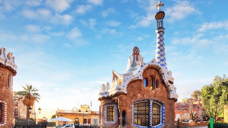 Deux guérites situées à l’entrée principale du parc Güell, sur la rue d’Olot, ressemblent à la maison de conte de fées de Hansel et Gretel. Leur forme et leur design inhabituels rappellent la célèbre maison en pain d’épices, et les toits sont faits d’argile catalane et de carreaux de mosaïque.