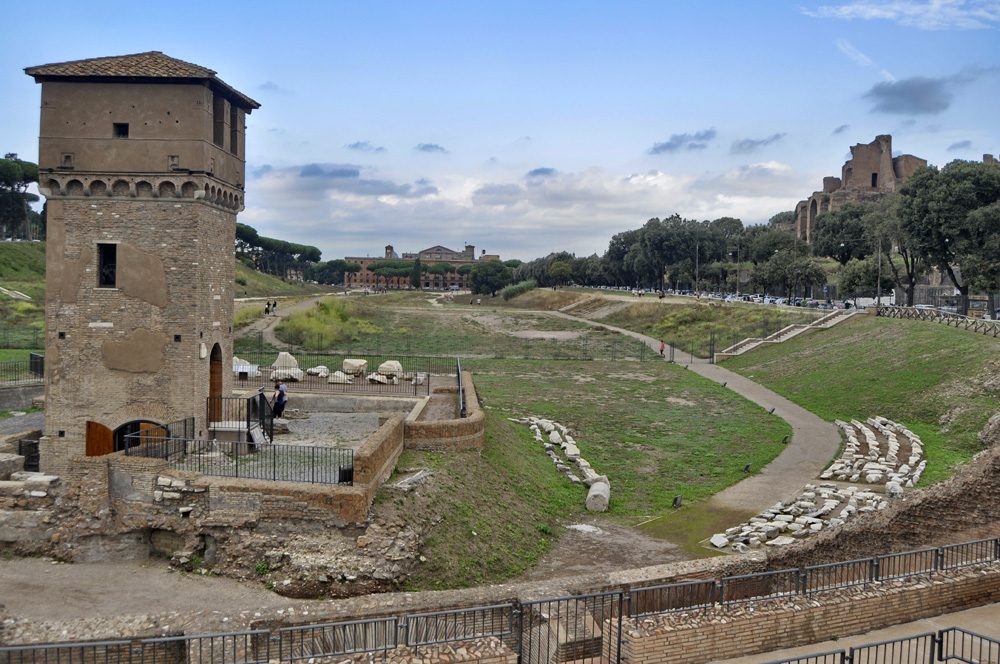 Au-delà de la colline du Palatin au sud-ouest, vous trouverez le Circus Maximus, qui était l’autre grand lieu de divertissement à l’époque de l’empire. C’était le plus grand stade de l’empire et il accueillait des courses de chars ainsi que d’autres compétitions. Aujourd’hui, il ne reste du stade que la piste en terre battue et quelques murs et tours, mais il suffit de peu pour imaginer les chars qui dévalent la longueur du terrain et les foules de fans en adoration qui regardent depuis les tribunes.